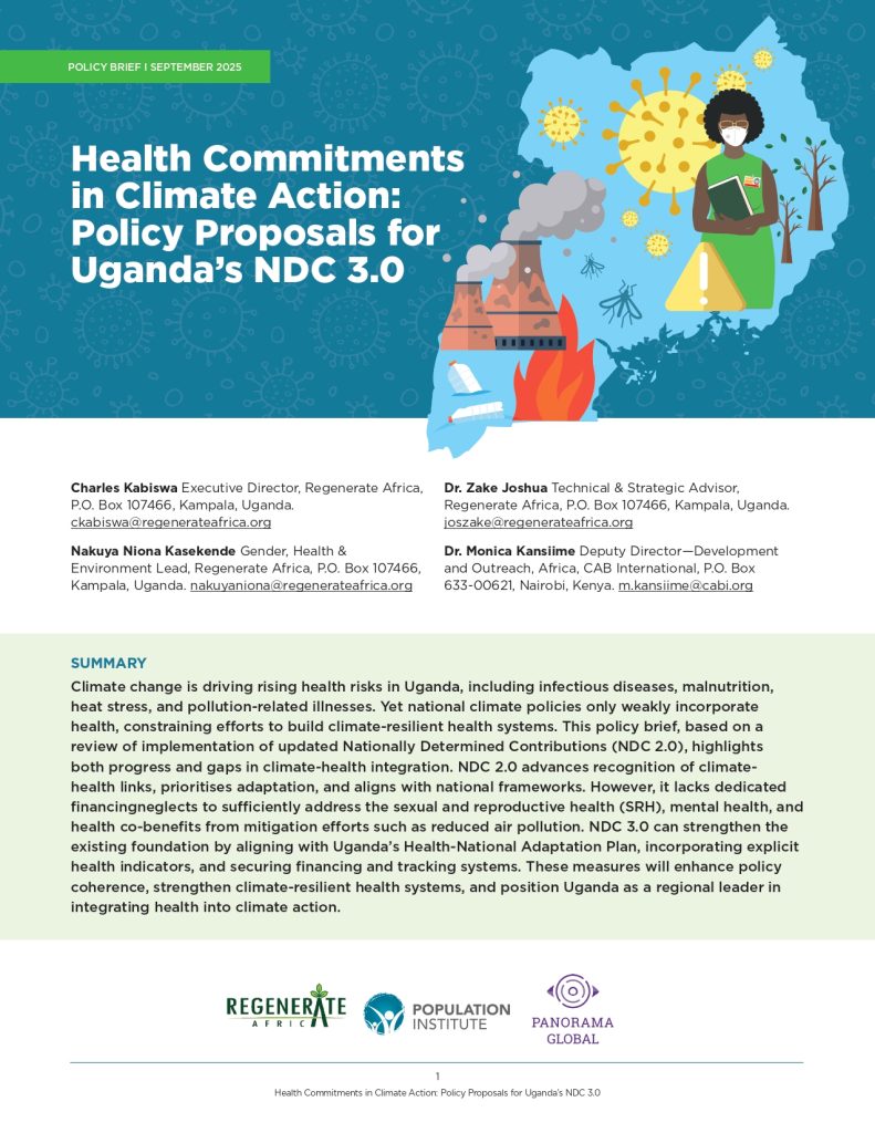 “Health Commitments in Climate Action: Policy Proposals for Uganda’s NDC 3.0 — A policy brief by Regenerate Africa and partners, calling for stronger integration of health and climate resilience in Uganda’s national climate agenda.”